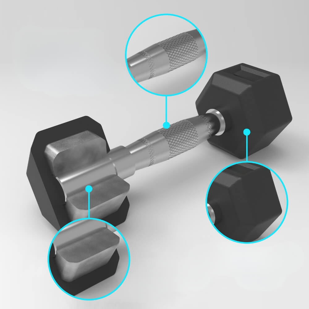 Díky šestihrannému tvaru závaží zůstává činka při odložení na svém místě. Činky Hexclusive jsou perfektní jak pro funkční trénink, tak pro rychlé supersety, kde nechcete ztrácet čas hledáním výbavy po celé posilovně.Technický popis: