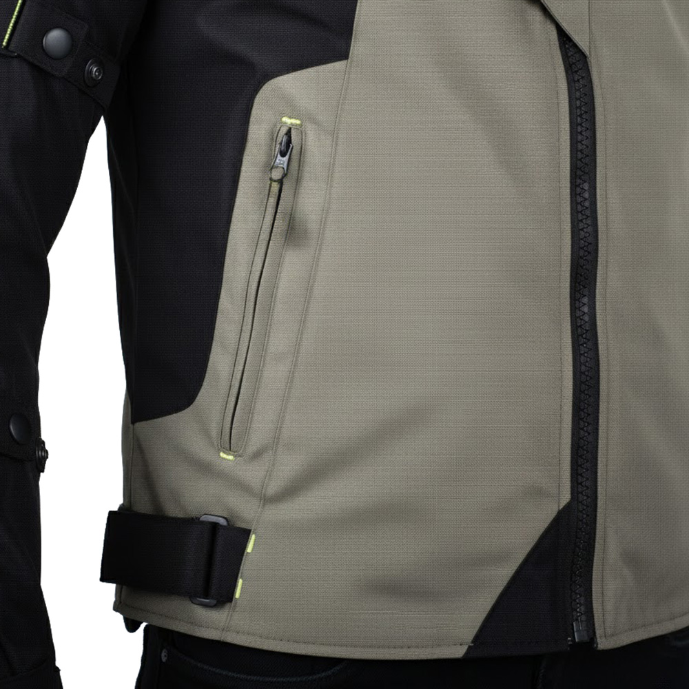 Na bocích najdete nastavitelné popruhy, rukávy lze upravit hned na několika místech pomocí zipů, druků a suchých zipů. Elastické panely v ohybech paží garantují, že při ovládání motorky zůstává vše dokonale komfortní. Límec je opatřen neoprenovým zakončením a měkkým sametovým panelem s dotekem aksamitu – vydejte se na cesty bez škrábání a nepříjemných otlaků na krku.