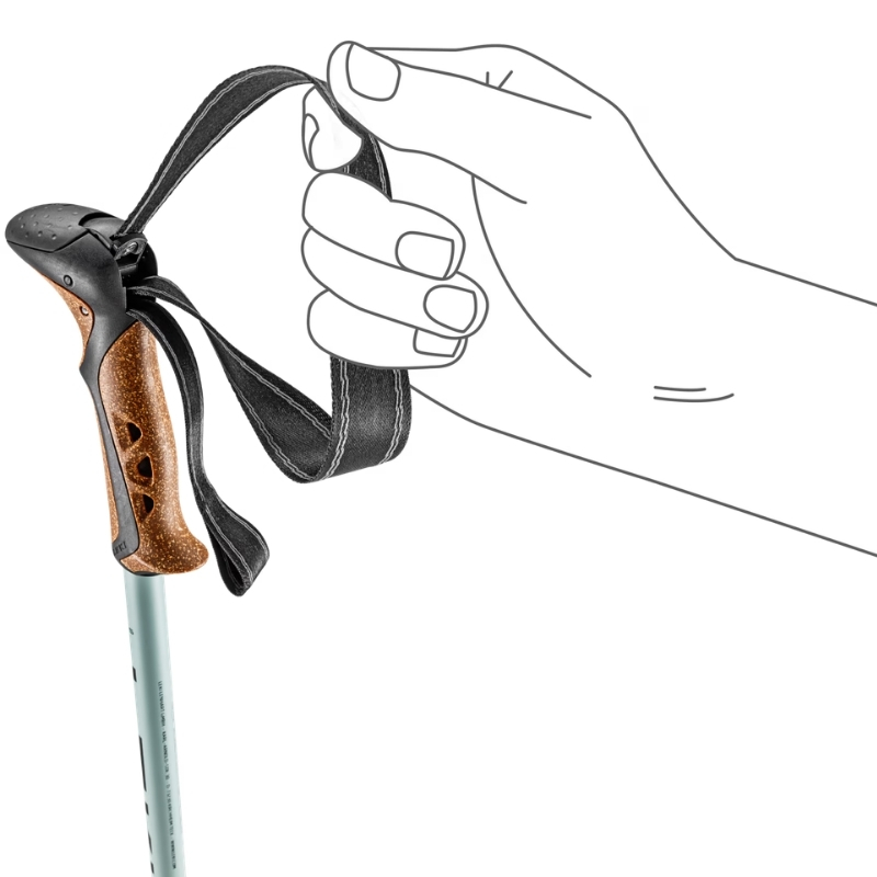Odpružení DSS integrované ve špičce hole účinně tlumí nárazy a snižuje zatížení kloubů a šlach až o 40 %, což oceníte hlavně při dlouhých sestupech. Pohodlí při úchopu zajišťují ergonomické gripy z přírodního korku, které dobře sedí v ruce a příjemně odvádí vlhkost.