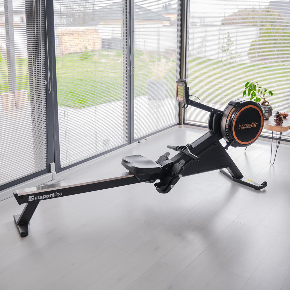 Profi vzduchové veslo s dodatečným magnetickým odporem, dlouhým pojezdem a možností připojení k mobilním aplikacím nebo hrudnímu pásu!. Veslovací trenažer inSPORTline RowAir vám dodá vítr do plachet, i když veslujete na suchu!