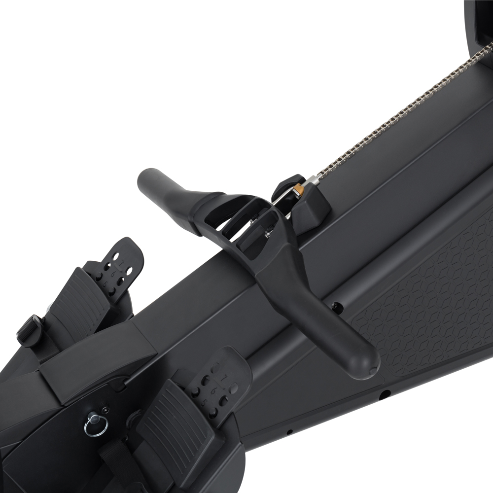 Kvalitně zpracovaná konstrukce se pyšní vysokou nosností 200 kg. Pro co nejpohodlnější trénink lze dále upravit délku pedálů podle velikosti vašeho chodidla. Veslovací úchop je pohodlný a při nečinnosti ho snadno zavěsíte pod ovládací panel. Lákadlem je také extrémně dlouhý pojezd o 145 cm!