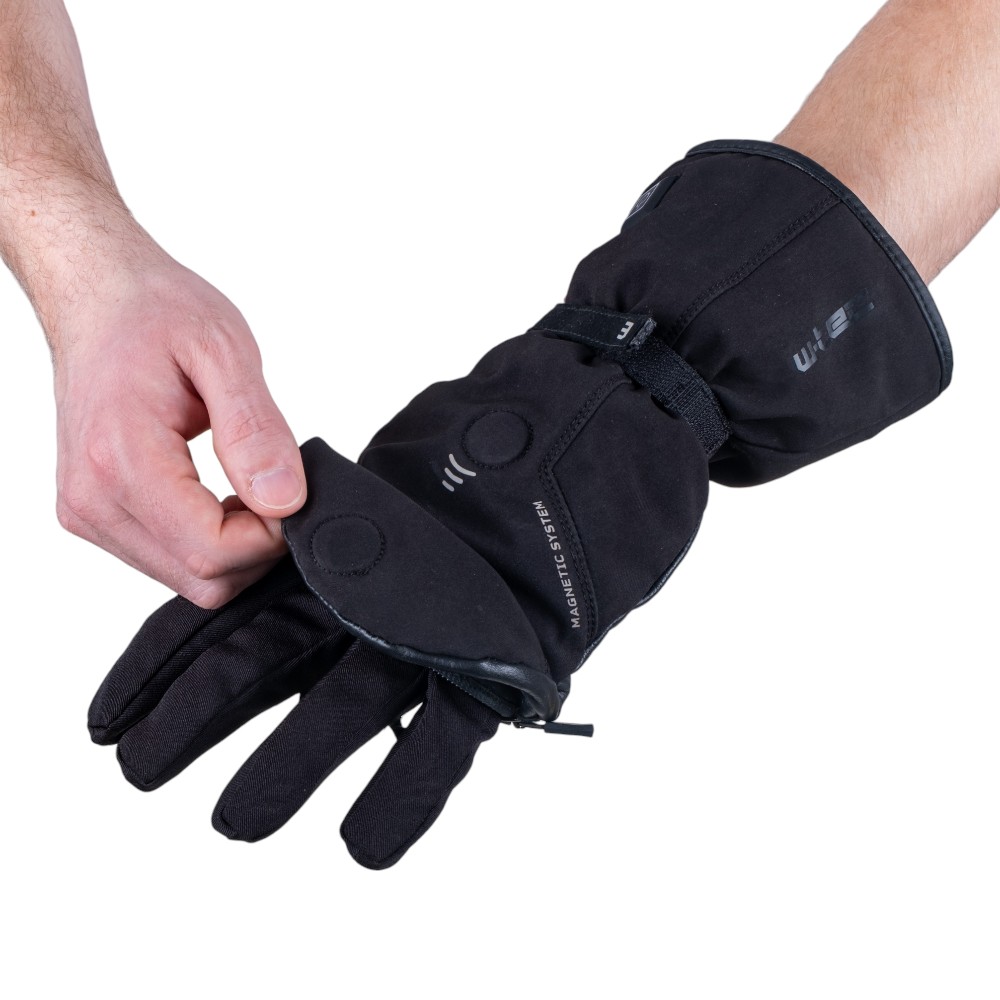 Vyhřívané prstové rukavice i palčáky v jednom, 3 úrovně vyhřívání, dobíjecí akumulátor, odolné vůči vodě i větru.. Vyhřívané rukavice W-TEC HEATflip 2v1 2×2000 mAh jsou chytrým řešením pro každého, kdo chce v zimě maximum tepla i flexibility. Díky provedení 2v1 je můžeš používat jako prstové rukavice pro přesnou manipulaci, nebo je během okamžiku proměnit v palčáky, které nabídnou ještě vyšší tepelný komfort.