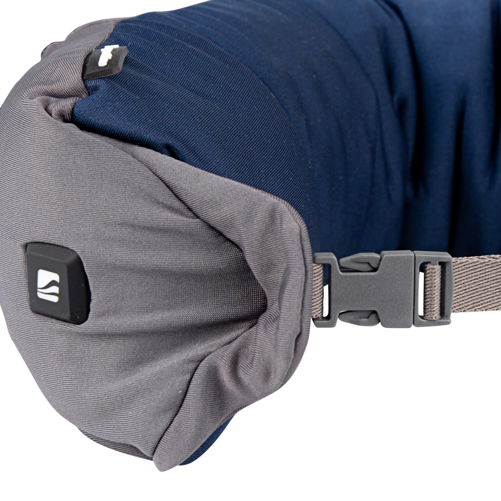 Na obou koncích polštářku najdete druk, kterým polštářek sepnete a bude vám na krku držet jak má. Pokud by byl druk příliš na těsno, můžete stejným způsobem zapnout přezku, která jinak perfektně poslouží pro připnutí polštářku na kufr či batoh, aby se vám nikde při cestování neztratil.