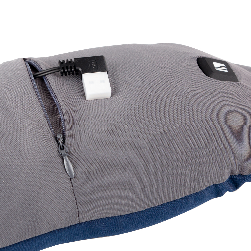 Elektrický výhřev zprovozníte připojením powerbanky (není součástí balení). Doporučujeme přikoupit powerbanku inSPORTline PowerTen II 10000 mAh, která zapadne do kapsičky na polštářku. Následně přidržíte po dobu dvou sekund tlačítko pro výhřev. Opakovaným stisknutím zvolíte požadovanou teplotu – bílá 40°C, modrá 45°C, červená 50°C – a už stačí jen zavřít oči a užívat si zasloužený odpočinek. Technický popis: