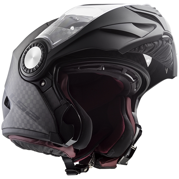 Špičková karbonová vyklápěcí přilba nejvyšší třídy s integrovanou sluneční clonou, nosní deflektor, vyjímatelný bradový spoiler, zapínání mikropřezkou, Pinlock® folie součástí, prodloužená záruka.. Výklopná přilba LS2 FF313 Vortex je prestižní karbonová vyklápěcí helma nejvyšší třídy s integrovanou sluneční clonou. Má mnoho užitečných a praktických předností, které oceníte v městském provozu i na výletech: pohodlně ovladatelnou výklopnou bradu s kvalitními kovovými zámky, plně vyjímatelný a pratelný komfortní antibakteriální interiér z hypoalergenních materiálů nebo účinný regulovatelný ventilační systém Dynamic Flow-Through Ventilation.
