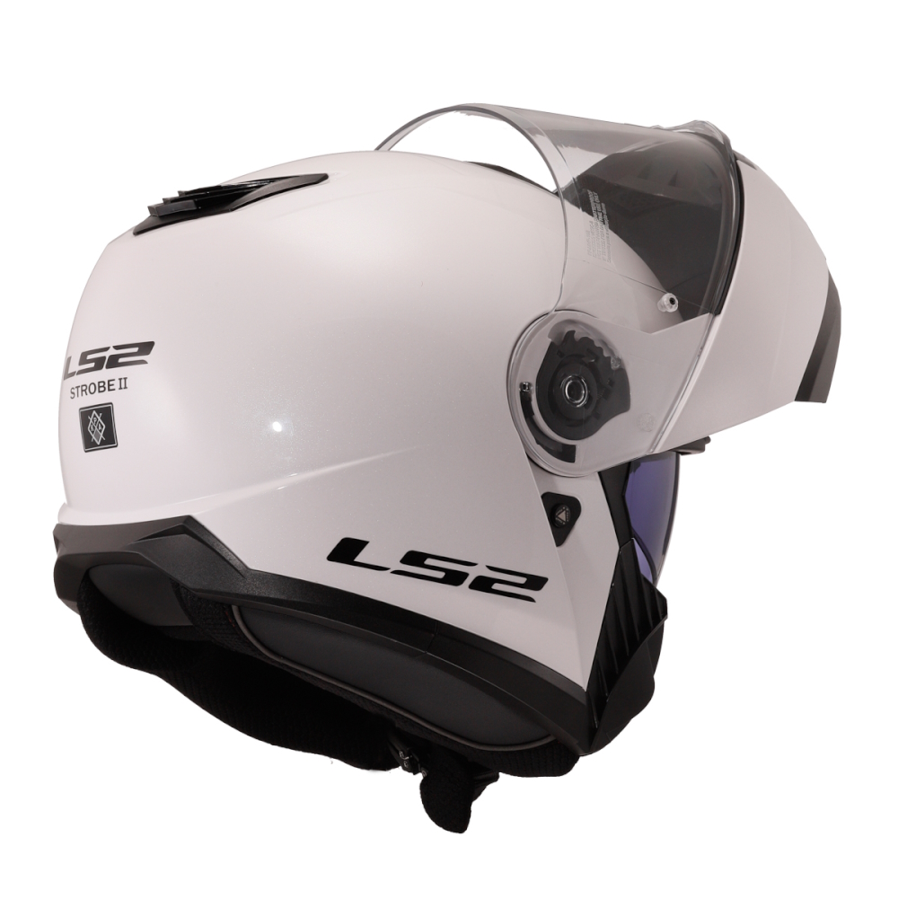 ECE 22.06, vyklápěcí helma s integrovanou sluneční clonou a vysokou aktivní bezpečností.. Přilba LS2 FF908 Strobe II je oblíbená výklopná helma nabízí mnoho užitečných a praktických vlastností, které oceníte v městském provozu i na výletech: pohodlně ovladatelnou výklopnou bradu s kvalitními kovovými zámky, plně vyjímatelný a pratelný komfortní antibakteriální interiér z hypoalergenních materiálů nebo účinný regulovatelný větrací systém.