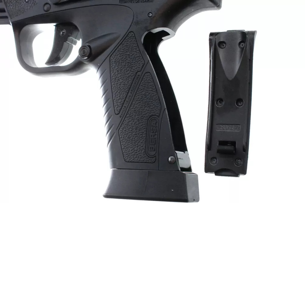 Vzduchová replika lehké argentinské pistole bez blowbacku. Nabíjí se ocelovými broky a pohon funguje na CO2 bombičku.. ASG Bersa BP9CC je vzduchová replika lehké argentinské pistole. Nabíjí se ocelovými BB broky, které po 20 kusech vkládáte do zásobníku. Do komory v zásobníku se vkládá i 12g CO2 bombička. Rukojeť doplňují polymerové střenky se zdrsněnou zónou, díky kterým vám pistole nevyklouzne z ruky.